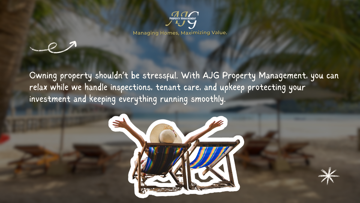 🌴🏡 Owning property shouldn’t feel like a burden. With AJG Property Management, you can sit back and relax while we handle inspections, tenant care, and upkeep. Smart management means peace of mind today and maximized value tomorrow 💼✨ #AJGPropertyManagement #ManagingHomes #MaximizingValue #PropertyCare #StressFreeOwnership
