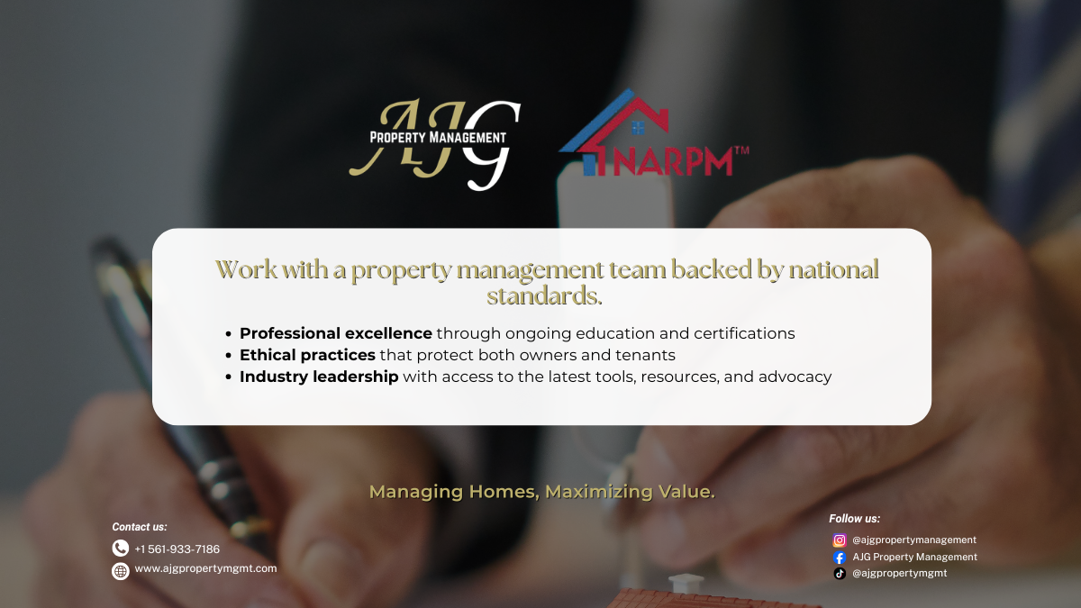 🏡✨ Property management isn’t just about upkeep—it’s about trust, ethics, and excellence. Backed by national standards through NARPM, AJG Property Management delivers professional care, proactive solutions, and industry leadership that protect both owners and tenants 💼🔑 #AJGPropertyManagement #ManagingHomes #MaximizingValue #PropertyCare #ProfessionalManagement