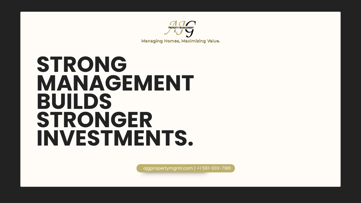 💼🏡 Strong management isn’t just about keeping things in order—it’s about building a foundation for lasting value. At AJG Property Management, we protect your property, reduce risks, and maximize returns so your investment grows stronger every day ✨🔑 #AJGPropertyManagement #ManagingHomes #MaximizingValue #PropertyCare #InvestmentStrength
