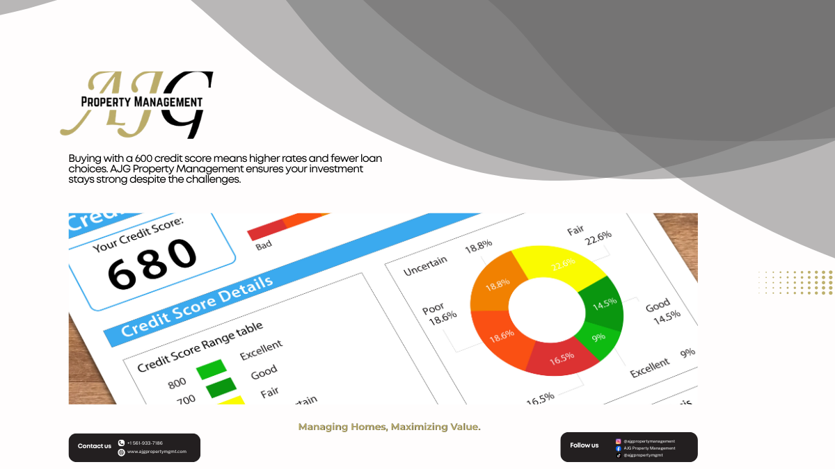 📊🏡 Buying with a lower credit score can mean higher rates and fewer loan choices—but smart property management keeps your investment strong. At AJG Property Management, we help protect your property, maximize value, and ensure your future stays on track 💼✨ #AJGPropertyManagement #ManagingHomes #MaximizingValue #PropertyCare #SecureInvestments
